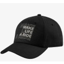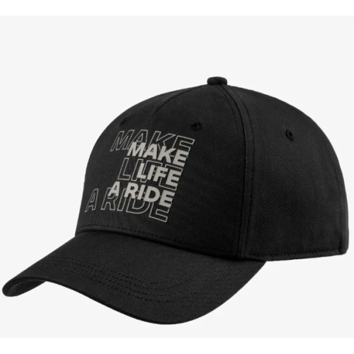 Den svarte «Make Life a Ride»-capsen er en stilig måte å uttrykke din lidenskap for BMW Motorrad-sykler på. Høykvalitets varmeoverføringsskrift i gummi og metallspennen med preget BMW-logo gir capsen et sporty, men elegant utseende. Et elastisk skråbånd sikrer perfekt passform til enhver tid.