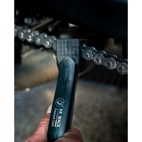 Rester fra kjedesmøring, sand, veismuss med mer dannes det et gjenstridig belegg på kjedet og drevene, noe som akselererer slitasjen.